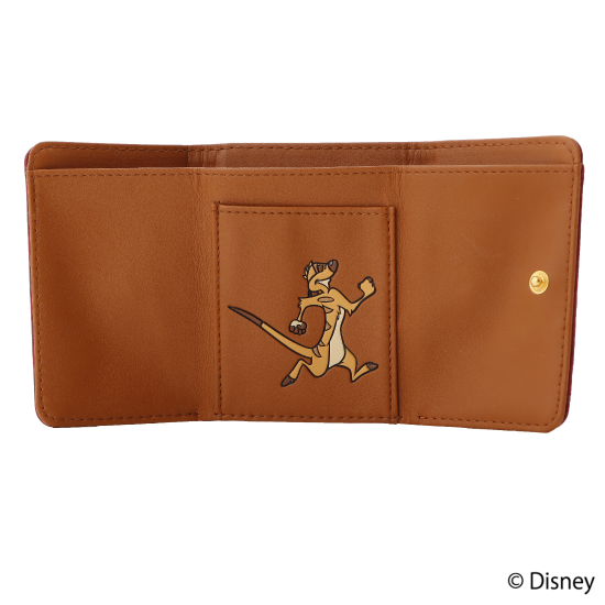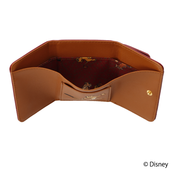 レッドブラウンの色をベースに、『ライオン・キング』の作品の世界を三つ折り財布に表現しています。内側、特にお札入れの裏地などにもキャラクターが登場。大人の女性のためのウォレットです。