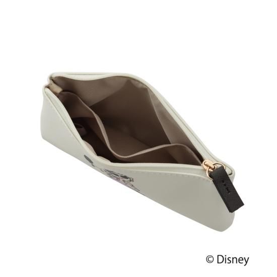 持ち運びに便利なスリムサイズのポーチ。片面は小物が入るファスナー付きポーチ、もう片面にティッシュポケットが付いています。