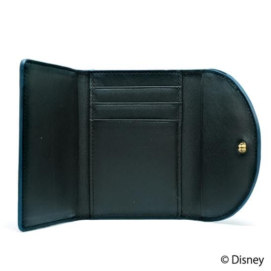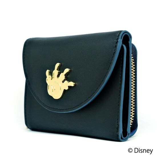 スタイリッシュでありながらも女性らしいフォルムのラウンド型のフラップウォレットです。表面にはオリジナル製作の「スティッチ」の”足あと”をイメージしたゴールドチャームをあしらっています。側面のコバ塗りはアクセントとして「スティッチ」のボディカラーのブルーを使用。日常に馴染むよう、あくまでシンプルに仕上げました。