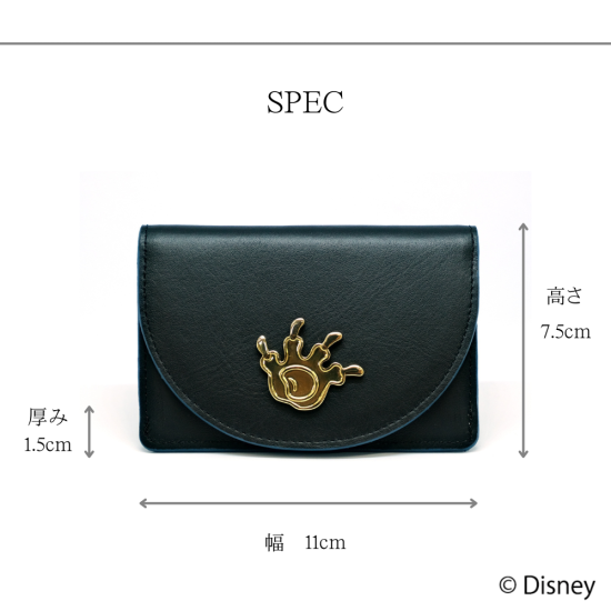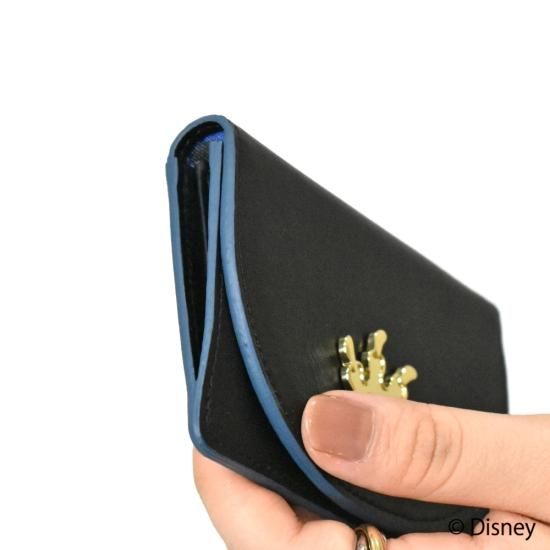 スタイリッシュでありながらも女性らしいフォルムのラウンド型のフラップカードケースです。表面にはオリジナル製作の「スティッチ」の”足あと”をイメージしたゴールドチャームをあしらっています。側面のコバ塗りはアクセントとして「スティッチ」のボディカラーのブルーを使用。日常に馴染むよう、あくまでシンプルに仕上げました。