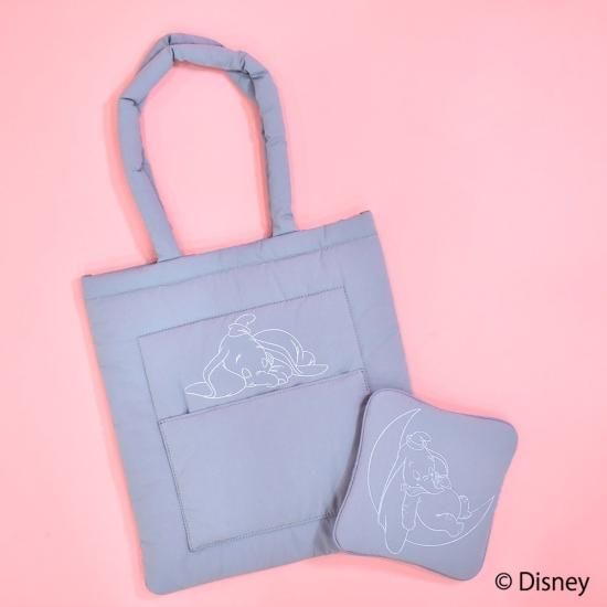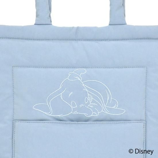 お布団やクッションのような優しい触り心地が特徴のパデッドトートバッグです。もこもことした質感と眠った「ダンボ」がとにかくかわいいデザインです。