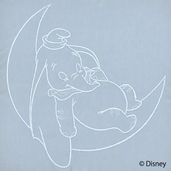 フロントには三日月で眠る「ダンボ」の刺繍をあしらいました。刺繍糸は同系色にしており、さりげないデザインにこだわりました。