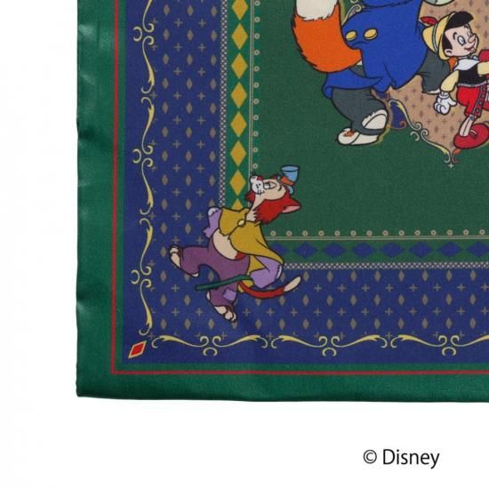 中央には大きくピノキオたちがあしらわれており、クラシックなバンダナ風デザインがファッションにアクセントを加えます。