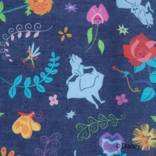 ベースはネイビーの落ち着いた色味。愛らしい「アリス」のプリントに癒されること間違いなし。