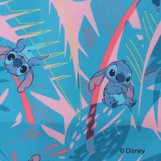 葉っぱのすき間からのぞく「スティッチ」の様々な表情をプリントし、世界観をあますことなく表現しました。