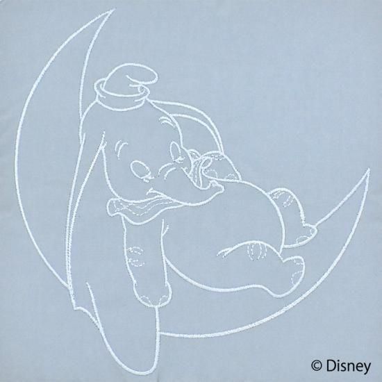 フロントには三日月で眠る「ダンボ」の刺繍をあしらいました。刺繍糸は同系色にしており、さりげないデザインにこだわりました。