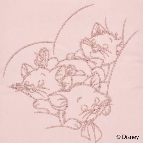 フロントには「マリー」「トゥールーズ」「ベルリオーズ」が仲良く眠る姿を刺繍でデザインしました。刺繍糸は同系色にしており、さりげないデザインにこだわりました。
