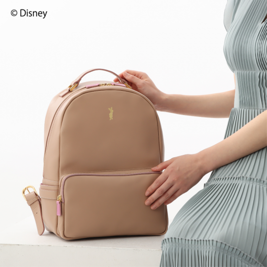 優しく淡いピンクカラーをベースに、『くまのプーさん』の作品の世界や”ピグレット”をリュックサックに表現しました。