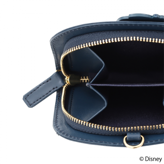 個性的な半月型のフォルム、スマートで落ち着いたネイビーカラーをベースに、『くまのプーさん』の作品の世界や”イーヨー”をコインケースに表現しました。