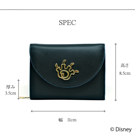 スタイリッシュでありながらも女性らしいフォルムのラウンド型のフラップウォレットです。表面にはオリジナル製作の「スティッチ」の”足あと”をイメージしたゴールドチャームをあしらっています。側面のコバ塗りはアクセントとして「スティッチ」のボディカラーのブルーを使用。日常に馴染むよう、あくまでシンプルに仕上げました。