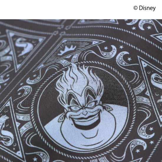 ディズニーヴィランズ ”アースラ” と ”フロットサム”、”ジェットサム” といった『リトル・マーメイド』に登場するキャラクターや印象的なアイテムを、シックなタイルのように敷き詰めたデザインで表現しました。