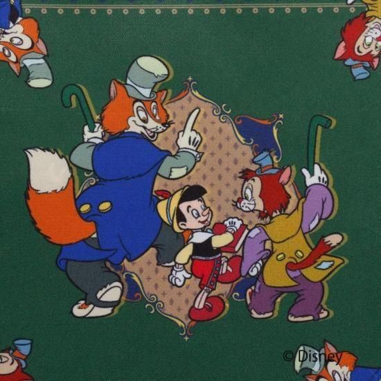 中央には大きくピノキオたちがあしらわれており、クラシックなバンダナ風デザインがファッションにアクセントを加えます。