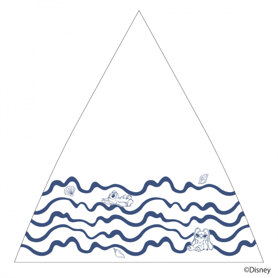 涼しげなネイビーカラーで海と波をデザイン。リラックスした「スティッチ」と「エンジェル」が波に揺られている可愛いデザインです。